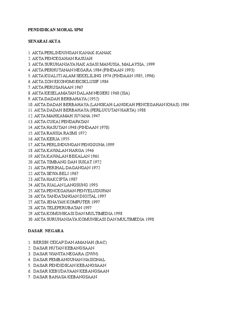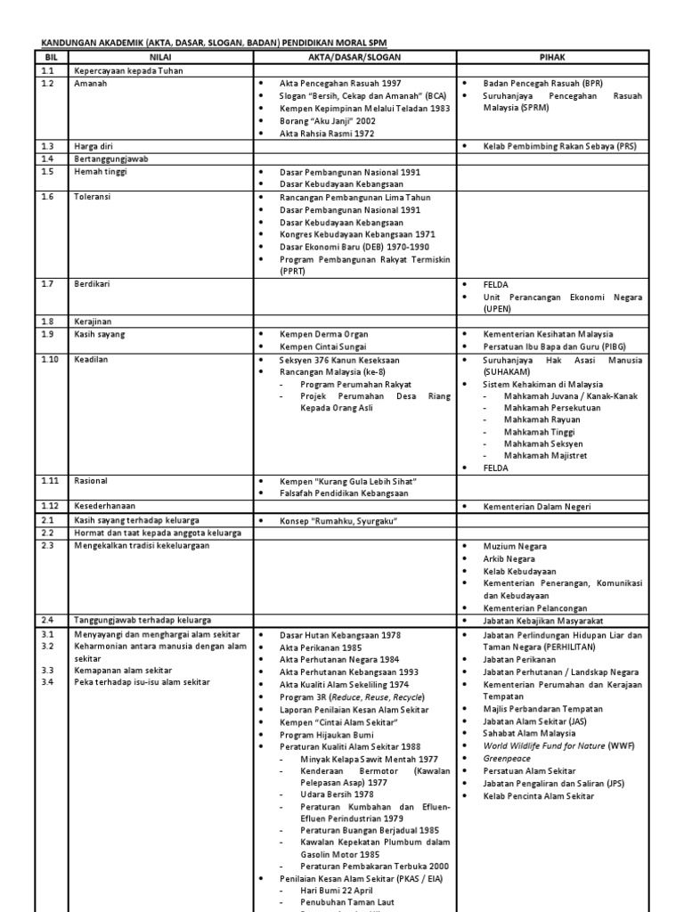 Akta dan dasar pendidikan moral tingkatan 4 dan 5. Pendidikan moral kod kertas : Akta dan dasar pendidikan moral spm. Akta dan dasar dalam mata pelajaran pendidikan moral spm (sijil pelajaran malaysia). For example, the question ask you to give two related moral values and the mark is 6m. Buku akta undang undang malaysia textbooks on. Pelaksanaan pendidikan wajib di peringkat rendah 2003 bertarikh 27 november 2002. Akta dan dasar pendidikan moral spm. Ilbs 20 undang undang malaysia akta syarikat 2016 akta 777 peraturan peraturan kaedah kaedah ilbs 2020 topbooks plt. Kandungan akademik akta dasar slogan badan pendidikan moral spm download pdf. Aku nak a+ pendidikan moral thursday, 2 august 2012. Akta pencegahan rasuah 1007 akta rahsia rasmi 1972 2. Kandungan akademik (akta, dasar, slogan, badan) pendidikan moral